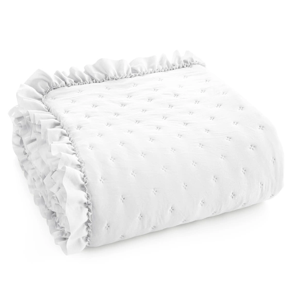 Tym, co wyróżnia narzutę Libi3, jest staranne pikowanie wykonane techniką hot press, która eliminuje widoczne szwy, nadając całości eleganckiego charakteru. Delikatna falbana nadaje jej lekkości i wyjątkowego wdzięku, a uniwersalny styl sprawia, że doskonale komponuje się z różnorodnymi aranżacjami wnętrz.