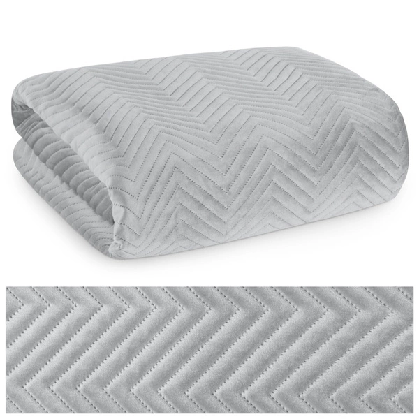 Tasteful one-sided bedspread. Made of soft velour. The cape is finished with an aesthetic trim and quilted using the hot press method - without using threads. With the help of thermo quilting any patterns are embossed, resulting in a permanently bonded material of very high strength. Simple colors and form make it ideal for interiors decorated in different styles. The capa is lightweight and machine washable.