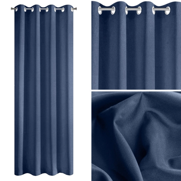 Soft curtain with a medium level of darkening. It delights with its beautiful color and minimalist character. Universal window decoration. width: 140 cm, length: 250 cm, color: navy blue, Weight: 140 GSM, Composition: 100% polyester