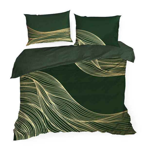 - The luxurious collection of premium bedding was created from magnificent. The set is decorated with a unique pattern presented in green and gold.