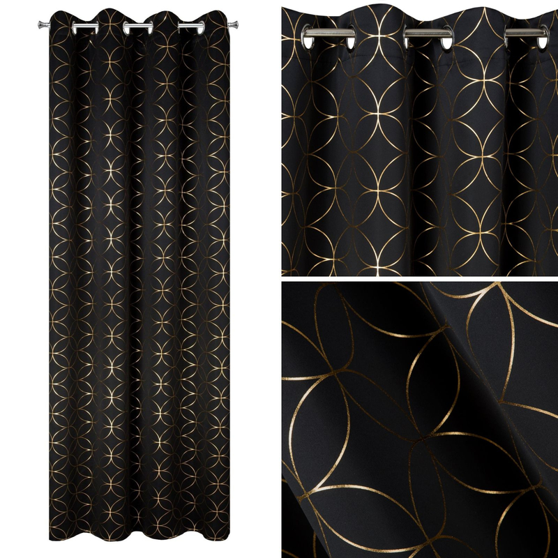 - Beautiful Blackout curtain is a tailor-made product for your home. Aesthetic decoration with a geometric print on a black background hung with grommets.