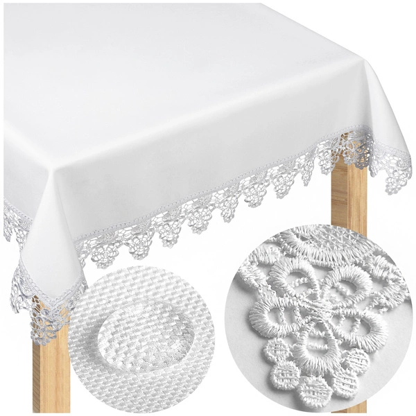 Stainproof Tablecloth with Guipure Lace White 150x550
