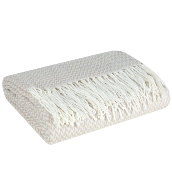 The acrylic blanket is made of acrylic fibers, making it suitable for allergy sufferers. The stylish fine pattern, arranged in a herringbone motif and beige color will look extremely original in the room. The fringes with which it is finished on two sides also add to its charm.