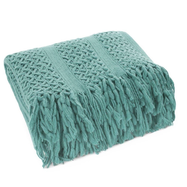 The acrylic blanket was made from acrylic fibers, making it suitable for allergy sufferers. The stylish openwork pattern, arranged in a herringbone motif and fashionable mint color will look extremely original in the room. The fringes with which it is finished on two sides also add to its charm.