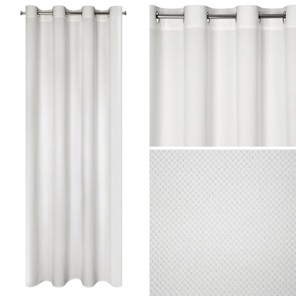Produkt posiada 8 przelotek o średnicy 4cm, które ułatwiają powieszenie jej na karniszu. Brzegi nie rolują się oraz nie marszczą. Zasłona jest łatwa do użytku oraz do konserwacji, a do tego świetnie wygląda z gładkimi firanami. Dobrze zaciemniają pokój oraz dodają nowoczesnego motywu.