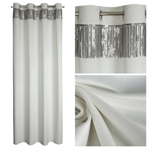 • Zasłona welwetowa jednokolorowa z ozdobną taśmą z cekinami.