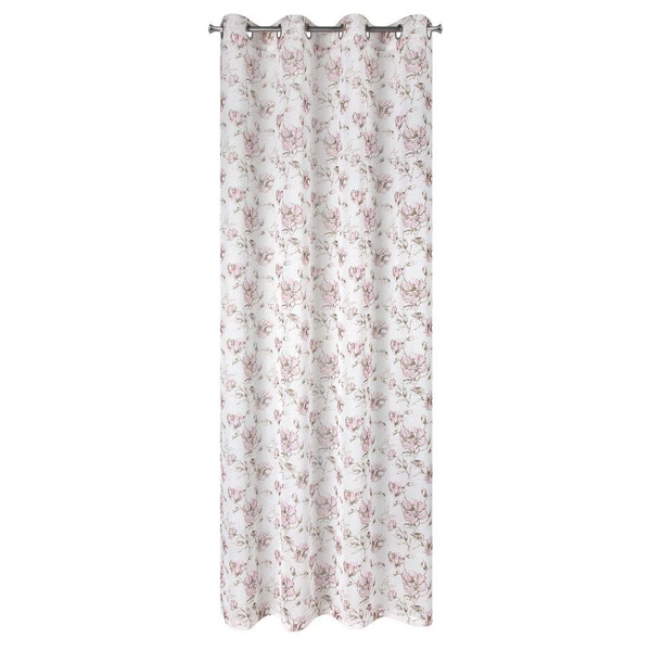 Firana gotowa z nadrukiem szerokość: 140 cm, długość: 250 cm, kolor: biały/różowy, Gramatura: 80 GSM, Skład: 100% poliester
