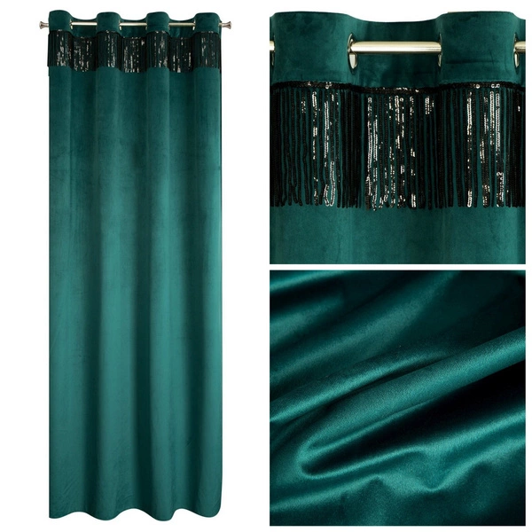 • Zasłona welwetowa jednokolorowa z ozdobną taśmą z cekinami.