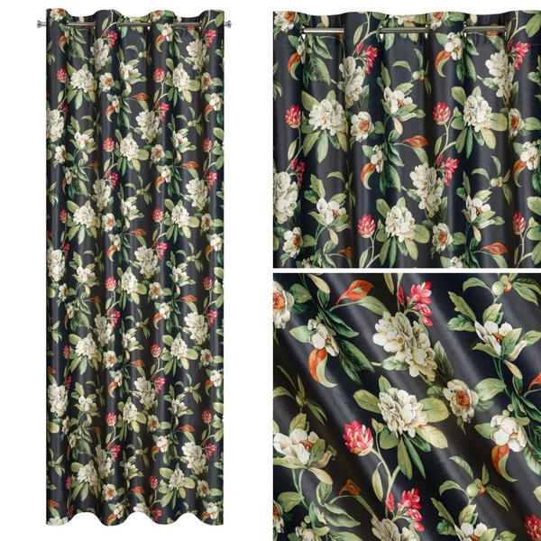 - Zasłona z kolekcji Alea z motywem kwiatów na czarnymtle.