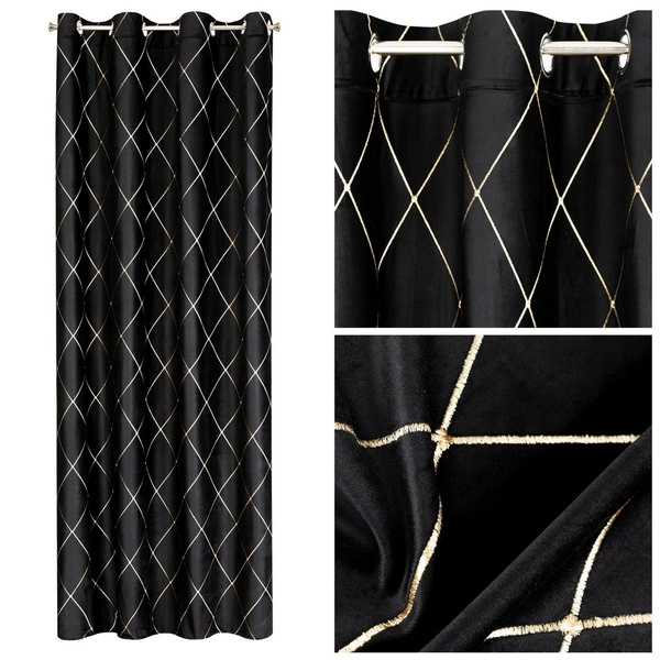Modna zasłona z haftem, ukazującym romby to stylowa dekoracja, która będzie pięknie prezentować się w nowoczesnym i klasycznym wnętrzu. Francuski welwet, z którego została wyprodukowana, charakteryzuje się wyjątkową miękkością oraz subtelnym połyskiem. Dzięki temu, że materiał jest optymalnej grubości, produkt bardzo dobrze izoluje światło, gwarantując komfortowy klimat w pomieszczeniu.
