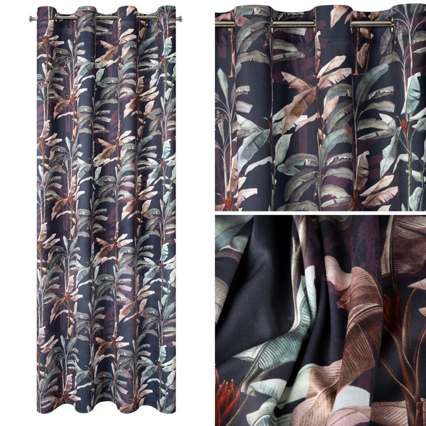 Jeśli lubisz botaniczne motywy z pewnością przypadnie Ci do gustu zasłona z kolekcji Nikol. Wprowadzi ona do Twojego salonu egzotyczny klimat oraz dopełni całość aranżacji. Zasłona zapewni poczucie prywatności i komfortu oraz ochroni Cię przed nadmiarem promieni słonecznych. Dodatkowo została wykonana z przyjemnego welwetu, który nie ulega zniszczeniu nawet po wielokrotnym praniu. Zawieszając zasłonę na karniszu za pomocą przelotek, możesz ułożyć regularne fale, które miękko otulą okno i ocieplą wnętrze.