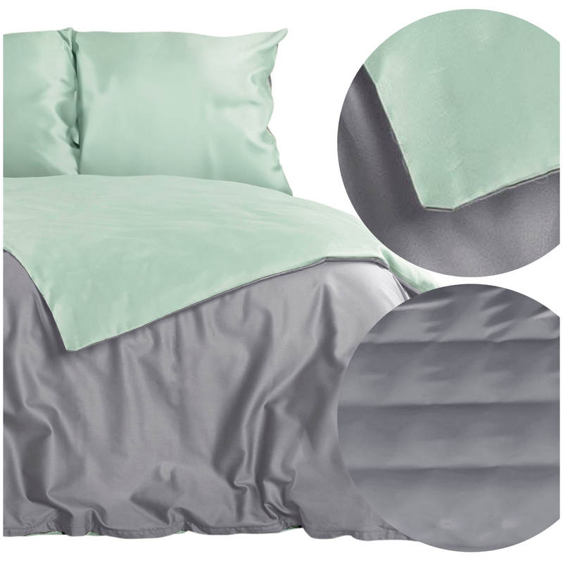 - Komplet pościeli Nova3, wykonany z świetnej jakości satyny bawełnianej o grubym splocie. Pościel ma gładką powierzchnię i delikatny połysk. W dotyku jest przyjemna, miękka i bardzo dobrze zachowuje się podczas prania. Kolor srebrno-miętowy.