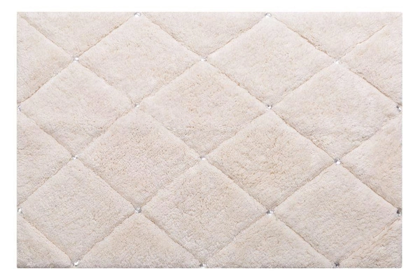 Bawełniany dywanik, został wyprodukowany ze 100% naturalnej tkaniny, która jest miękka w dotyku i zapewnia komfort użytkowania. Produkt doskonale izoluje stopy od chłodnych płytek w łazience oraz znakomicie chłonie wodę. Kremowy kolor udekorowany geometrycznym wzorem oraz połyskującymi kryształkami to połączenie modnej stylistyki, która szczególnie wpasuje się we wnętrza o wystroju glamour. Dzięki temu może również służyć jako element dekoracyjny salonu lub innego pokoju.