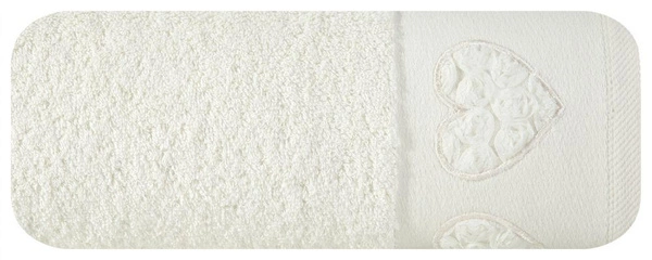- Nowoczesny ręcznik zdobiony bordiurą z efektem 3D. Kolor kremowy.