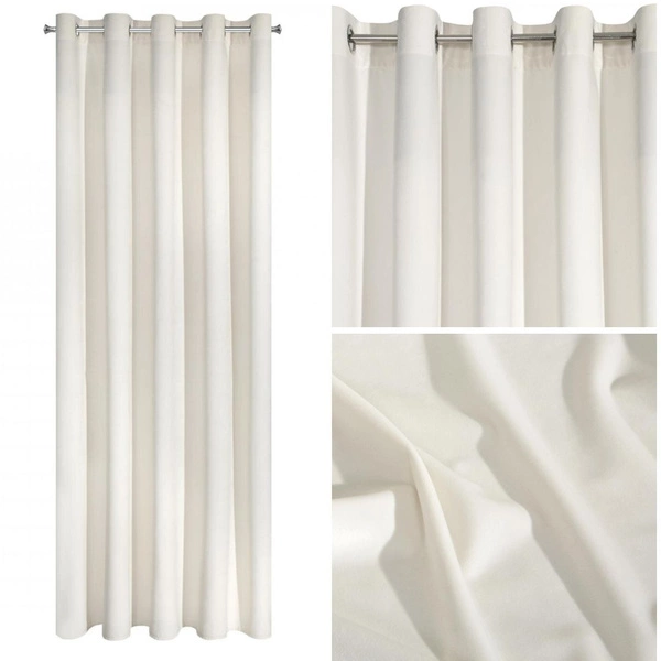 Zaciemniająca zasłona z kolekcji Villa, firmy Eurofirany, wykonana z delikatnego weluru. Zasłony idealnie nadają się do każdego nowoczesnego wnętrza. Będą stanowić elegancki dodatek w każdej sypialni czy salonie. Wykonane są z gładkiego materiału, na górze ozdobionego estetycznymi przeszyciami, dzięki czemu zasłona układa się faliście.