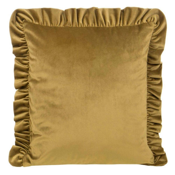 Welwetowa poszewka, wykonana z miękkiej niczym aksamit tkaniny w kolorze miodowym to prosta ozdoba, która odmieni wygląd wnętrza i wprowadzi do niego powiew świeżości. Gładka struktura oraz dekoracyjne falbanki sprawią, że produkt będzie idealnie pasował do wielu aranżacji wnętrz. Znakomicie przełamie również nowoczesny styl i doda romantycznego klimatu.