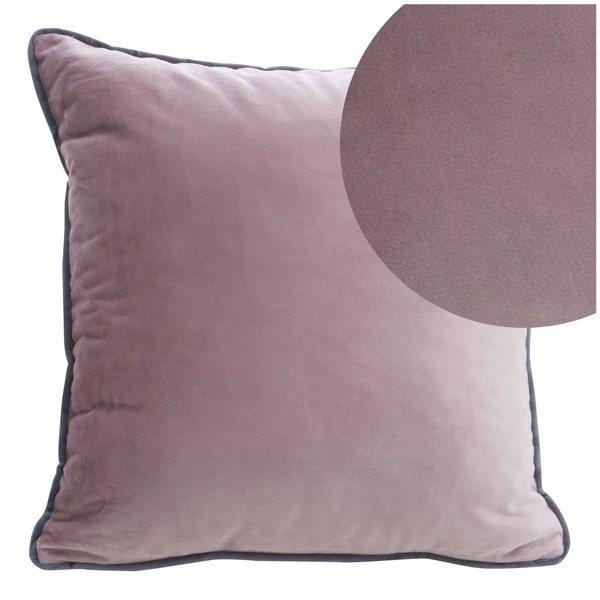 Poszewka welwetowa zdobiona lamówką. Kolor pudrowy. Poszewka Mel została wyprodukowana z gładkiego i miękkiego welwetu. Będzie wspaniałym dodatkiem, który uatrakcyjni wygląd pomieszczenia, urządzonego w nowoczesnym stylu. Dekoracyjna wypustka dodaje produktowi elegancji oraz uroku. Poszewka jest łatwa w praniu i prasowaniu, dzięki czemu zawsze wygląda estetycznie na łóżku czy na kanapie.