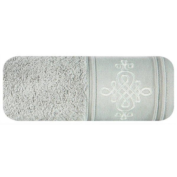 - Bawełniany ręcznik w kolorze srebrnym z ornamentowym haftem.