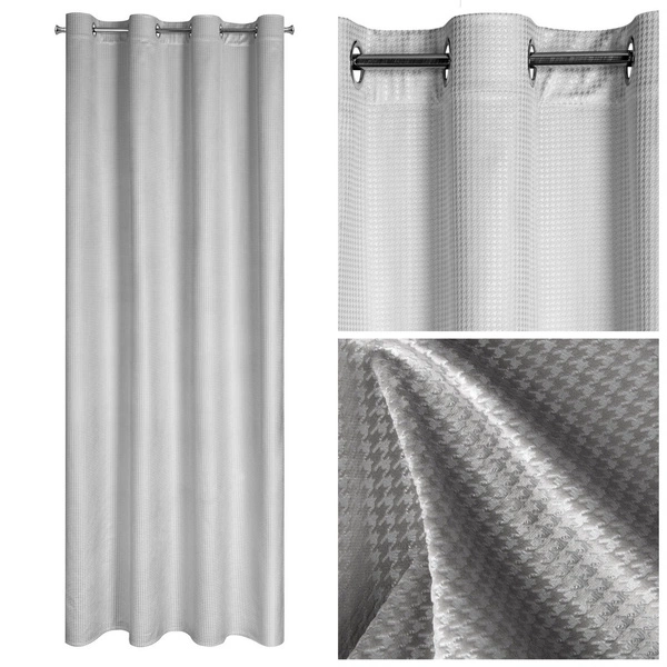 - Zasłona gotowa, z nadrukiem w pepitkę w kolorze srebrnym.