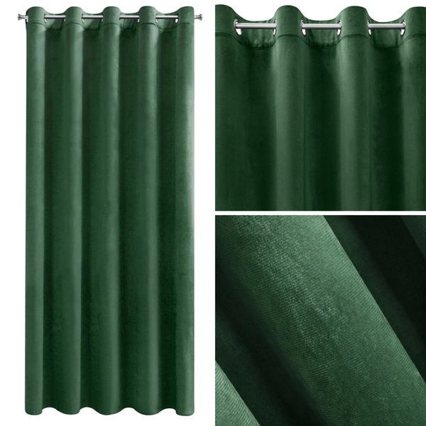 Elegancki dodatek oprawy okna stworzony z aksamitnej w dotyku tkaniny. Dodatkowym atutem jest jej estetyczne i precyzyjne wykończenie, a także wyśmienicie się komponujące przelotki. Na oryginalny wystrój składa się subtelny zielony kolor tła oraz klasyczna lamówka.