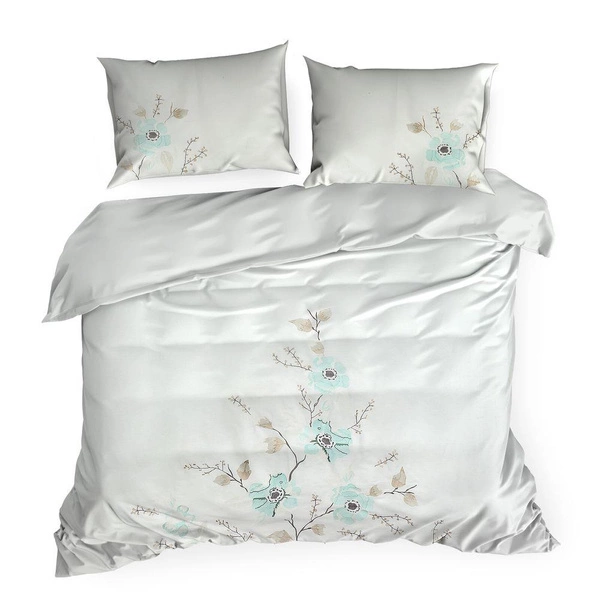 Szukasz eleganckiej pościeli, która zapewni Ci komfortowy odpoczynek? Komplet Premium ukazujący haftowany wzór kwiatów i gałązek na białym tle wprowadzi do sypialni nutkę klasyki. Szczególnie zachwyci osoby, preferujące styl romantyczny i retro. Satyna bawełniana, z której został wykonany komplet, jest bardzo miękka i delikatna w dotyku. Zapewnia odpowiednią cyrkulację powietrza, latem zapewniając delikatny chłód, a zimą optymalne ciepło. Dzięki temu może być stosowana przez cały rok.