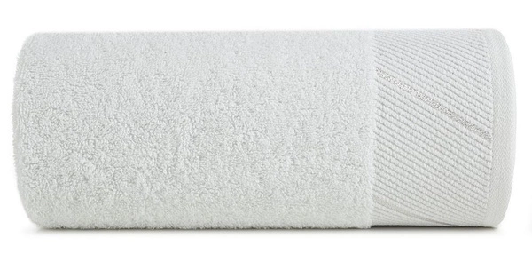 Modny ręcznik został ozdobiony bordiurą w błyszczące pasy, które urozmaicają jednolity deseń. Doskonałe surowce użyte do produkcji odpowiadają za puszystość i aksamitną miękkość, która delikatnie otula ciało po kąpieli. Kolejną zaletą ręcznika jest jego wysoka chłonność, dzięki której błyskawicznie osusza mokrą skórę oraz trwałość, dająca gwarancję użytkowania przez długi czas.