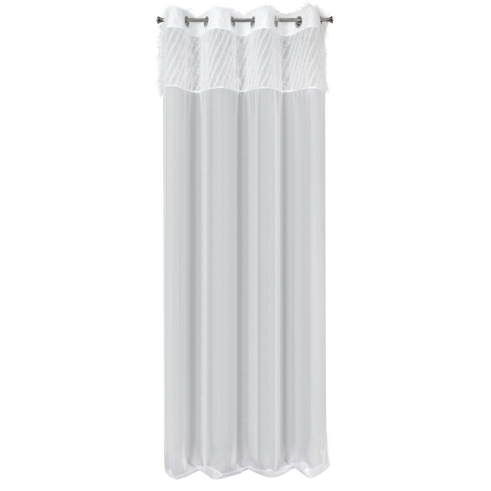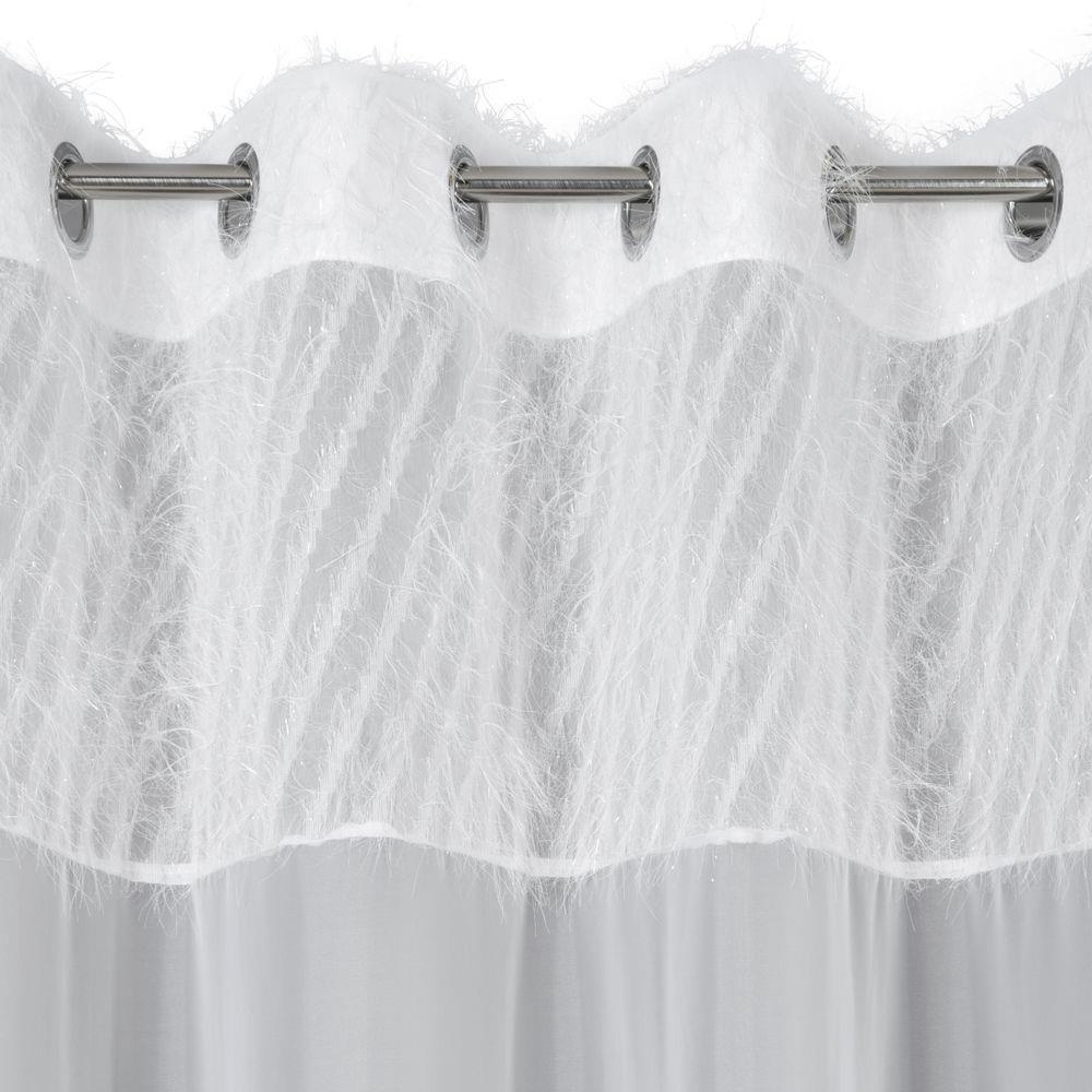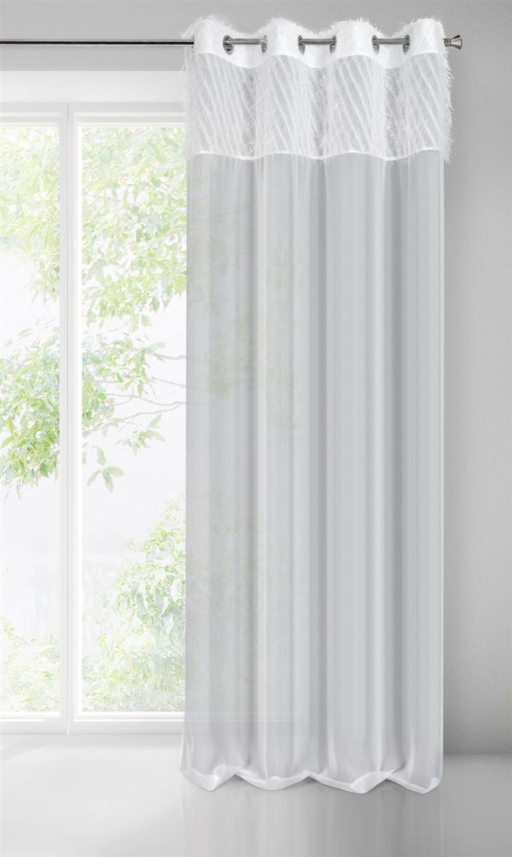 Delikatna zasłona łącząca szeroki pas kreszowanego welwetu z lekkim woalem. Bardzo elegancka, a zarazem subtelna dekoracja okienna. Zasłona z kolekcji Amira to połączenie dwóch tkanin, udekorowanych lśniącymi moherowymi nićmi. Śnieżnobiały kolor doda wnętrzu szyku i elegancji, doskonale komponując z innymi dodatkami w stylu nowoczesnym, skandynawskim lub glamour. Zawieszenie na przelotki umożliwia szybką zmianę dekoracji okiennej, układając zasłonę w piękne, miękkie i regularne fale.