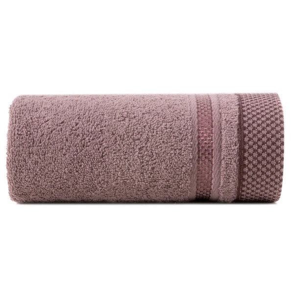 - Ręcznik z żakardową bordiurą w kolorze liliowym.