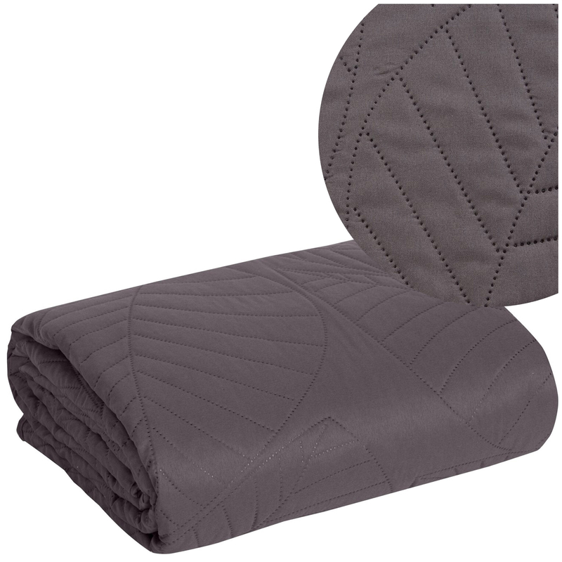 - Grafitowa narzuta z nadrukiem liści z kolekcji Boni6.
