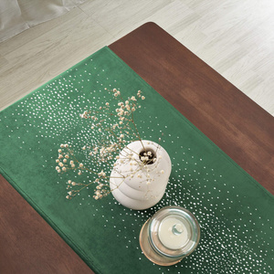 Obrus welurowy Shiny został wykonany z eleganckiego i aksamitnego w dotyku materiału o nazwie velvet. Charakteryzuje się pluszową strukturą dzięki czemu bardzo ładnie układa się na każdym stole. Intensywna kolorystyka, połyskujące kryształki oraz estetyczne wykonanie sprawiają, iż każde wnętrze nabierze nowego charakteru.