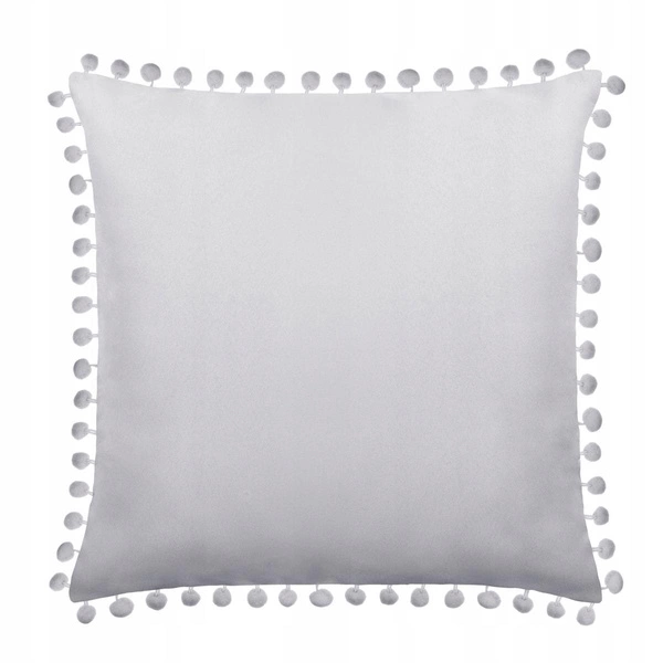 Dekoracyjna poszewka charakteryzuje się gładkim, jednobarwnym deseniem, który nadaje jej nowoczesnego wyglądu. Zastosowano w niej miękkie pompony o średnicy około 1,5 cm, które nadają jej nowoczesnego charakteru.