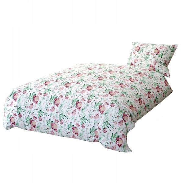 Pościel Peony składa się z poszwy na kołdrę 140x200 oraz 1 poszewki na poduszkę 70x80, dlatego dedykowana jest na łóżko pojedyncze. Zapinana jest na biały zamek błyskawiczny.