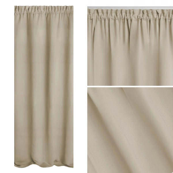 Posiada standardowy wymiary 140x270 cm oraz mocowanie w postaci taśmy, które można założyć na karniszy za pomocą żabek, haczyków, a nawet tunelu.