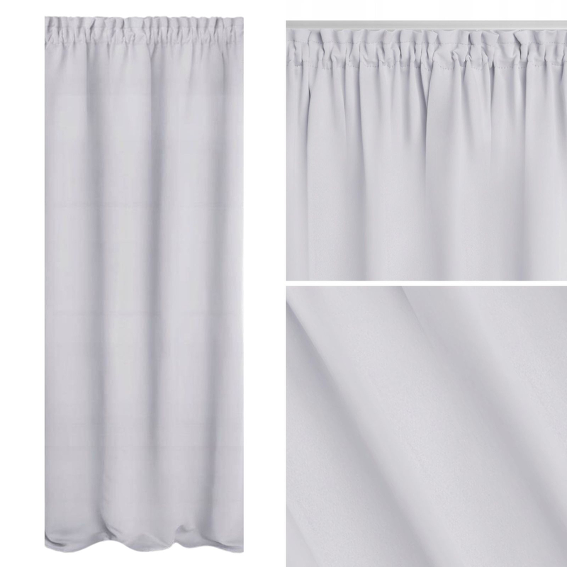 Posiada standardowy wymiary 140x270 cm oraz mocowanie w postaci taśmy, które można założyć na karniszy za pomocą żabek, haczyków, a nawet tunelu.