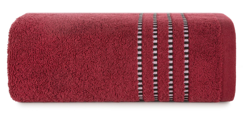 Modny ręcznik został ozdobiony kontrastującymi paseczkami, które urozmaicają jednolity deseń. Doskonałe surowce użyte do produkcji odpowiadają za puszystość i aksamitną miękkość, która delikatnie otula ciało po kąpieli. Kolejną zaletą ręcznika jest jego wysoka chłonność, dzięki której błyskawicznie osusza mokrą skórę oraz trwałość, dająca gwarancję użytkowania przez długi czas.