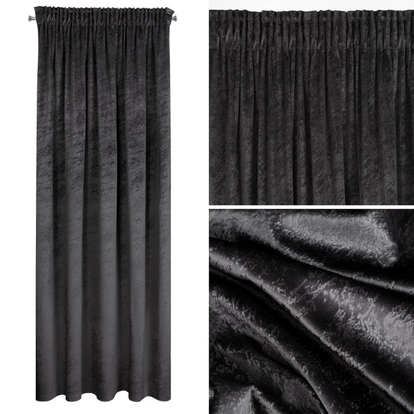Stworzona z miękkiej w dotyku, welwetowej tkaniny, która posiada funkcje odbijania światła, co daje wrażenie delikatnego połyskiwania. Taśma marszcząca z funkcją tunelu gwarantuje prostą oraz ekspresową zmianę zasłon.