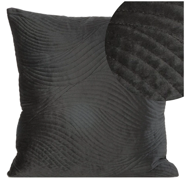 Miękka welwetowa tkanina z jakiej wykonano produkt została ozdobiona falującym wzorem, który naniesiony został metodą tradycyjnego pikowania. Dekoracja odznacza się również delikatnym połyskiem, co czyni ją jeszcze bardziej elegancką. Doskonale wpasuje się w modnie urządzone wnętrza w nowoczesnym stylu ciesząc oczy domowników. Dzięki przyjemnemu materiałowi można wykorzystać ją jako podporę dla głowy podczas popołudniowej drzemki w salonie.