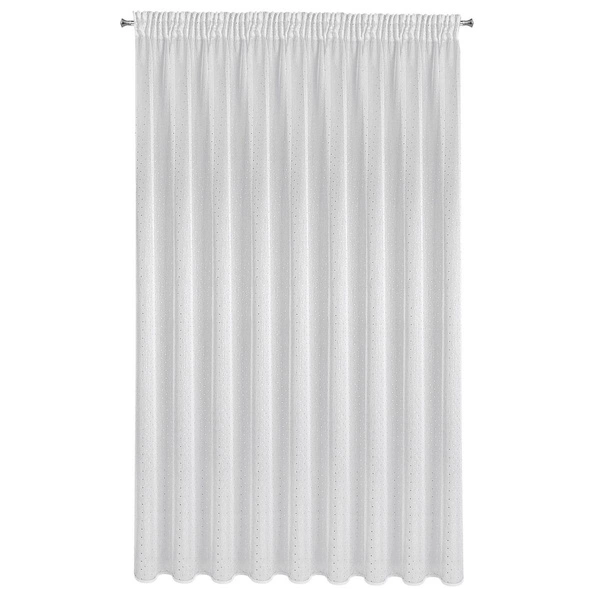 Modna firana z kolekcji Sibel to znakomita dekoracja okienna w nowoczesnym stylu. Biały kolor oraz lekka, zwiewna tkanina wprowadzi elegancki klimat do wnętrza oraz optycznie powiększy pomieszczenie. Wszyta taśma umożliwiają szybkie zawieszenie produktu na karniszu. Firana Sibel to uniwersalna ozdoba, która świetnie wkomponuje się w każdą aranżację wnętrza.