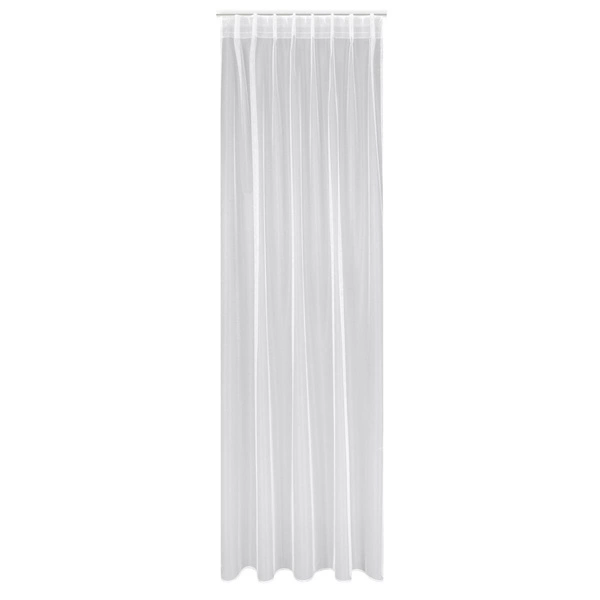 Zawieszenie odbywa się na taśmę flex do szyn sufitowych - pozwala na ułożenie firany w równomierne fale, a jednocześnie utrzymuje ją w stabilnej pozycji.