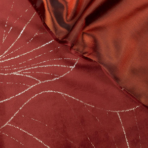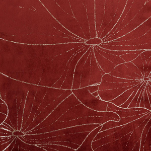 - Welwetowy bieżnik dekoracyjny z kolekcji Blink w kolorze ceglanym przedstawiający liście lilii wodnej.