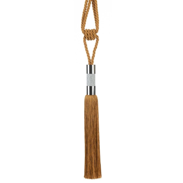Sznur posiada pojedynczy chwost, ozdobiony metaliczną obręczą z brokatową aplikacją. Efektowanie wyróżni dekoracje okienną, nadając zasłonie charakteru.