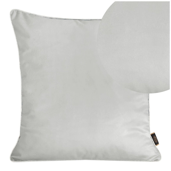 Prezentowana poszewka charakteryzuje się jednolitą barwą oraz przyjemną tkaniną, która jest bardzo miła w dotyku. Dodatkowo obszyta jest estetyczną wypustką. Świetnie sprawdzi się jako dekoracja w salonie lub sypialni, a także jako miękka podpora dla głowy lub pleców. Swoim wyglądem ozdobi zarówno nowoczesne, jak i klasyczne wnętrza. Srebrna strona poszewki wykonana jest z welwetu, natomiast druga z tkaniny imitującej len, co urozmaica produkt. Wyposażona jest również w zamek błyskawiczny.