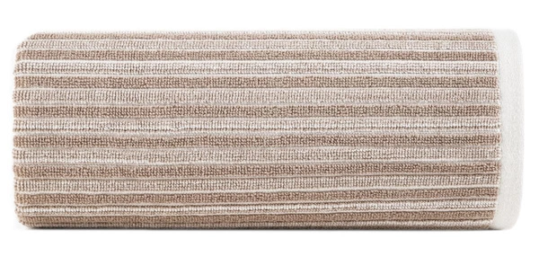 Tkanina udekorowana ozdobnymi pasami zachwyci każdego klienta, który preferuje eleganckie i nowoczesne wykończenie wnętrz łazienki. Bawełna, z której został wykonany produkt jest bardzo miękka i puszysta w dotyku oraz chłonna, dzięki czemu doskonale osuszy ciało po kąpieli. Ręcznik jest łatwy w procesie czyszczenia, nie farbuje oraz zachowuje intensywność kolorów i swoją formę nawet po wielokrotnym praniu.