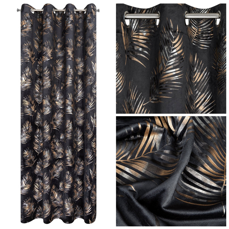 Zasłona dekoracyjna Gloria to wytworna dekoracja z cieniowanym wzorem liści palmowych. Nadruk mieni się w odcieniach zlota oraz srebra. Przy niej poczujesz się bliżej natury, a pomieszczenie nabierze świeżości i lekkości. Wprowadzi przyjazny klimat oraz zachęci do dłuższego przebywania we wnętrzu! Egzotyczny motyw przywodzi na myśl gorące dni wakacji, pobudzając wspomnienia o letnim urlopie.