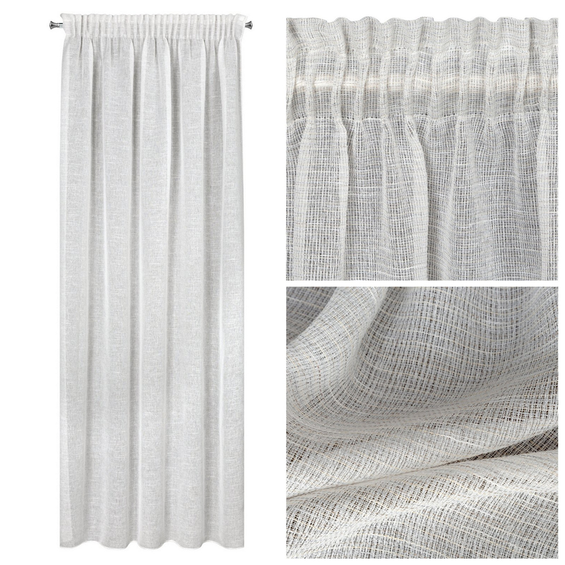 Kolor naturalny, w jakim wykonana jest zasłona, sprawia, że produkt ten doskonale pasuje do każdego wnętrza i jest łatwy do dopasowania do różnych stylów i aranżacji. Zawieszenie na taśmę ułatwia instalację i zapewnia pewne mocowanie zasłony do okna.