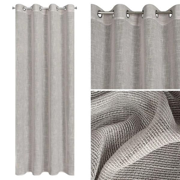 Zasłona wykonana jest z wysokiej jakości tkaniny o strukturze gęstej siatki o luźnym splocie, dzięki czemu pozwala na swobodny przepływ powietrza i światła.