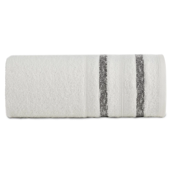 Wykonany z bawełny o wysokiej gramaturze - 500g/m2. Dzięki temu jest puszysty, miękki, a także charakteryzuje się doskonałą chłonnością wody. Ozdobna bordiura podkreślona melanżowymi pasami nadaje wyjątkowości produktowi. Taki detal to piękny dodatek do łazienki.