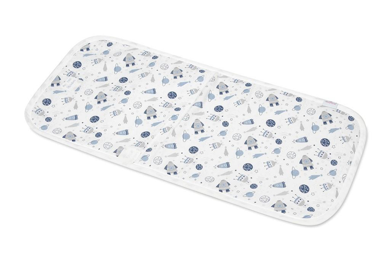Wierzchnia warstwa podkładu wykonana jest w 100% z bawełny oraz ozdobiona nadrukiem przedstawiającym statki kosmiczne. Wykończenie lamówką dodaje jej estetycznego wyglądu.