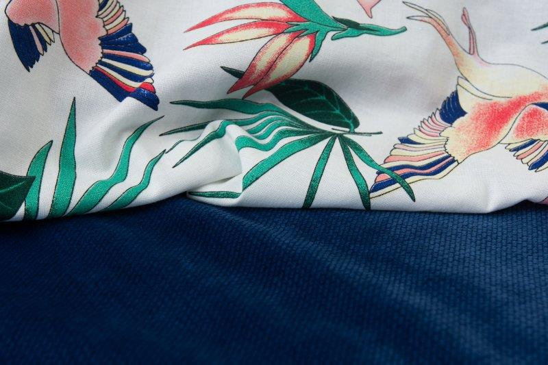 Kocyk Velvet będzie ciekawym i praktycznym dodatkiem do dziecięcego pokoiku. Za sprawą kolorowych nadruków o pięknych wzorach ożywi wystrój pomieszczenia i ociepli aranżację. Różowe kwiaty, zielone liście oraz wizerunek kolibra wniosą powiew świeżości. Druga strona kocyka zaprojektowana jest z tkaniny welwetowej w granatowym kolorze, co dodatkowo urozmaica wygląd produktu.