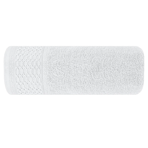 Ręcznik posiada ozdobną bordiurę, która w połączeniu z białą barwą dodaje mu elegancji i stylu, a także sprawia, że świetnie prezentuje się w każdej łazience podkreślając jej wystrój. Wysoka jakość materiału oraz dbałość o szczegóły gwarantuje, że ręcznik będzie służył przez długi czas zachowując swoje właściwości użytkowe oraz estetyczne.